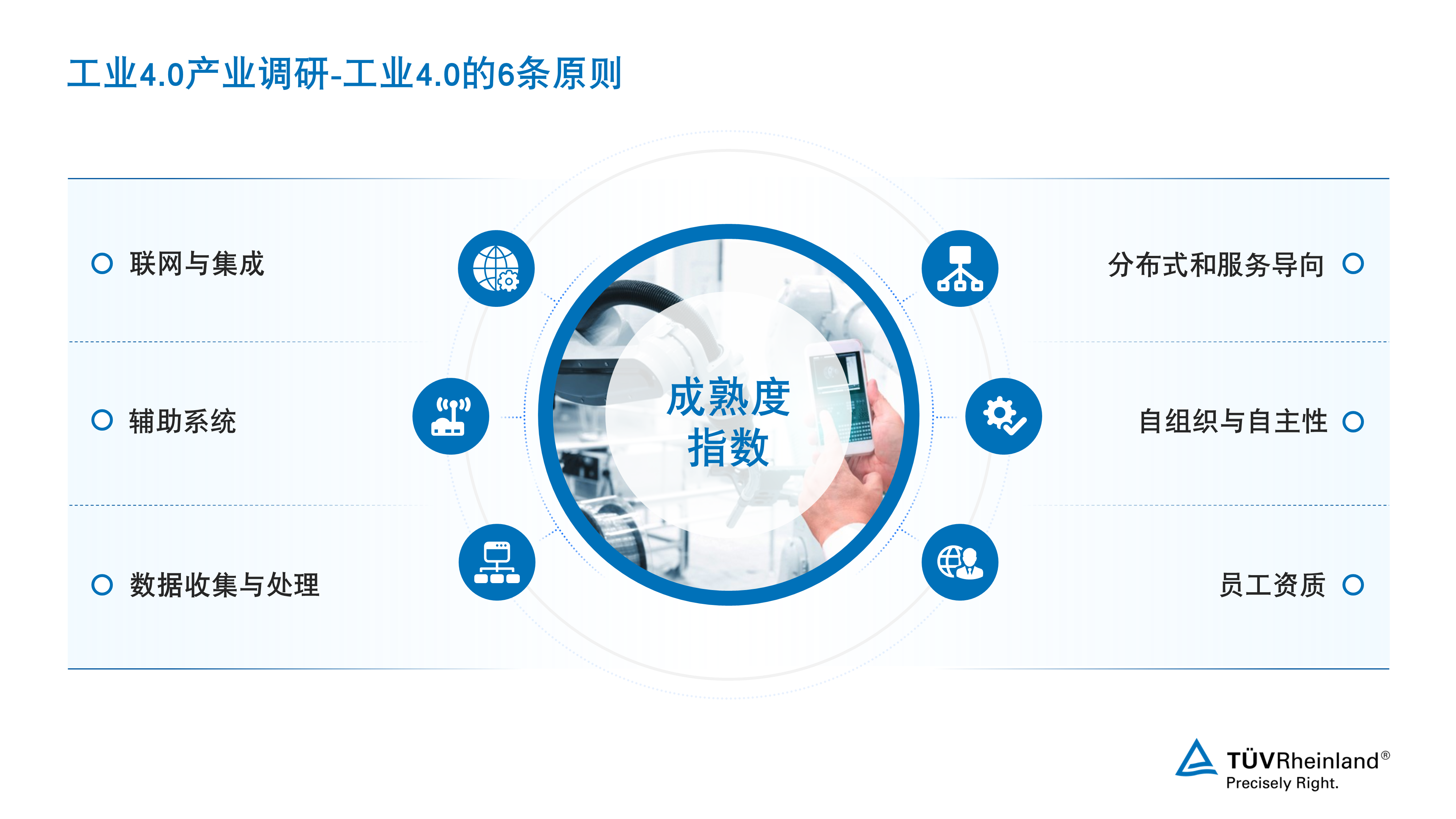 TÜV莱茵依托德国工业4.0成熟度评估方法,助推企业步入工业4.0阶段,响应“中国制造2025”纲领。